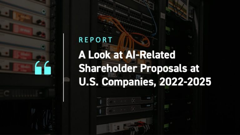 Below is an excerpt from ISS’ recently released report titled A Look at AI-Related Shareholder Proposals at U.S. Companies, 2022-2025. The full report is available