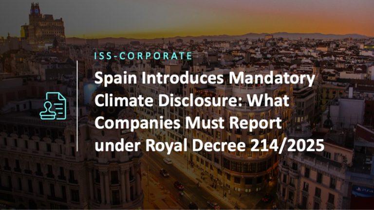 Below is an excerpt from ISS-Corporate’s recently released article “Spain Introduces Mandatory Climate Disclosure: What Companies Must Report under Royal Decree 214/2025”. The full article