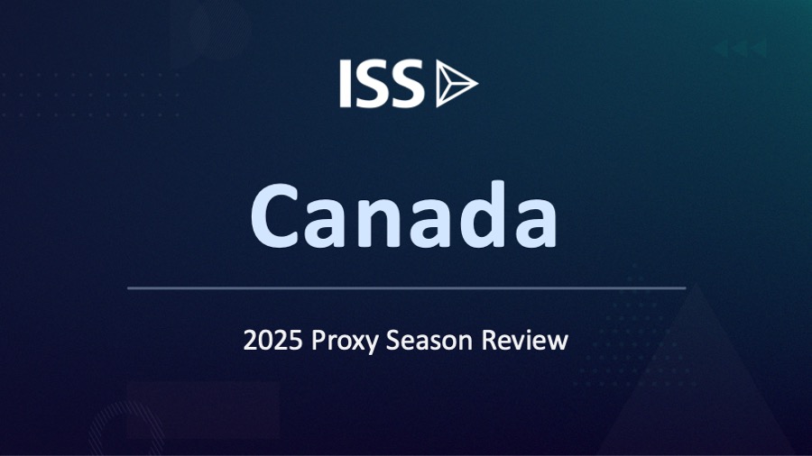 Below are key takeaways from ISS’ recently released 2025 Proxy Season Review: Canada. The full report is available to institutional subscribers by logging into ProxyExchange then selecting the Knowledge Center and its Library tab and to corporate subscribers by logging into Compass then selecting Governance and the Governance Library or Governance Exchange tab.