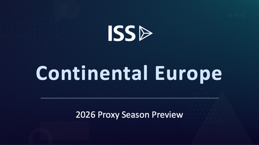 Below are key takeaways from ISS’ recently released 2026 Continental Europe Proxy Season Preview. The full report is available to institutional subscribers by logging into ProxyExchange then selecting the Knowledge Center and its Library tab and to corporate subscribers by logging into Compass then selecting Governance and the Governance Library or Governance Exchange tab.