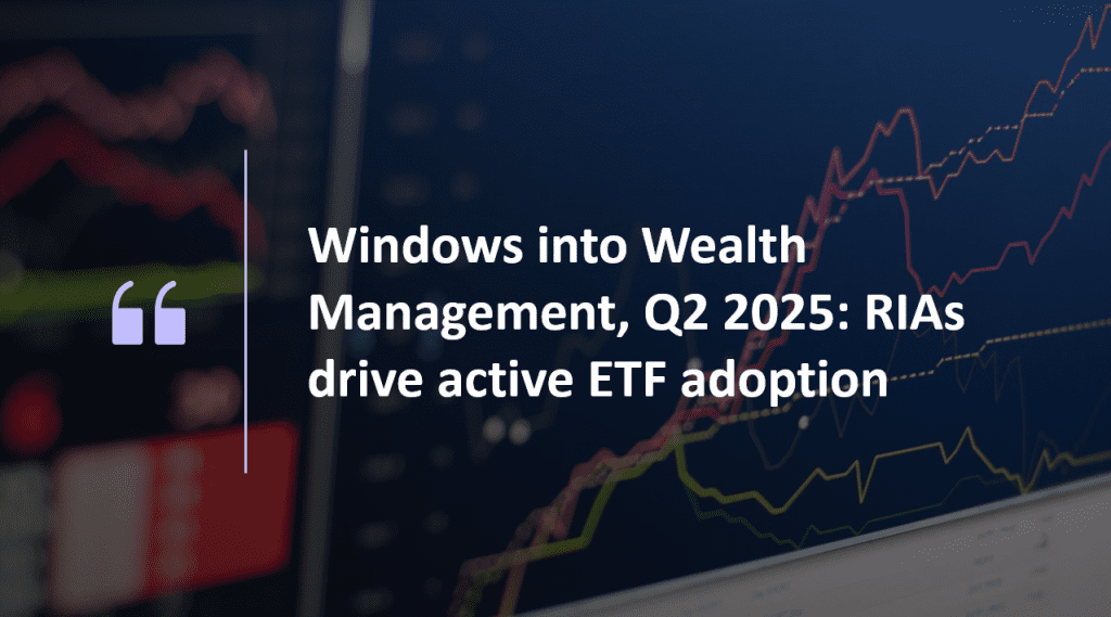 Exchange-traded funds (ETFs) are increasingly becoming the dominant investment structure, as passive ETFs account for the largest portion of monthly flows among registered investment vehicles. Tax efficiency and lower fees have raised their profile among intermediary advisors trying to deliver the most value to clients and direct retail investors prioritizing cost. Registered investment advisors (RIAs) have led the charge for intermediary ETF adoption. They not only prefer the vehicle by a wide margin compared to other channels, but this has directly translated to assets, with RIAs becoming the lead source of active ETF adoption.