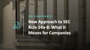 Below is an excerpt from ISS-Corporate’s recently released article “New Approach to SEC Rule 14a-8: What It Means for Companies”. The full article is available on