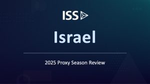 Below are key takeaways from ISS’ recently released 2025 Israel Proxy Season Review. The full report is available to institutional subscribers by logging into ProxyExchange then selecting the Knowledge Center and